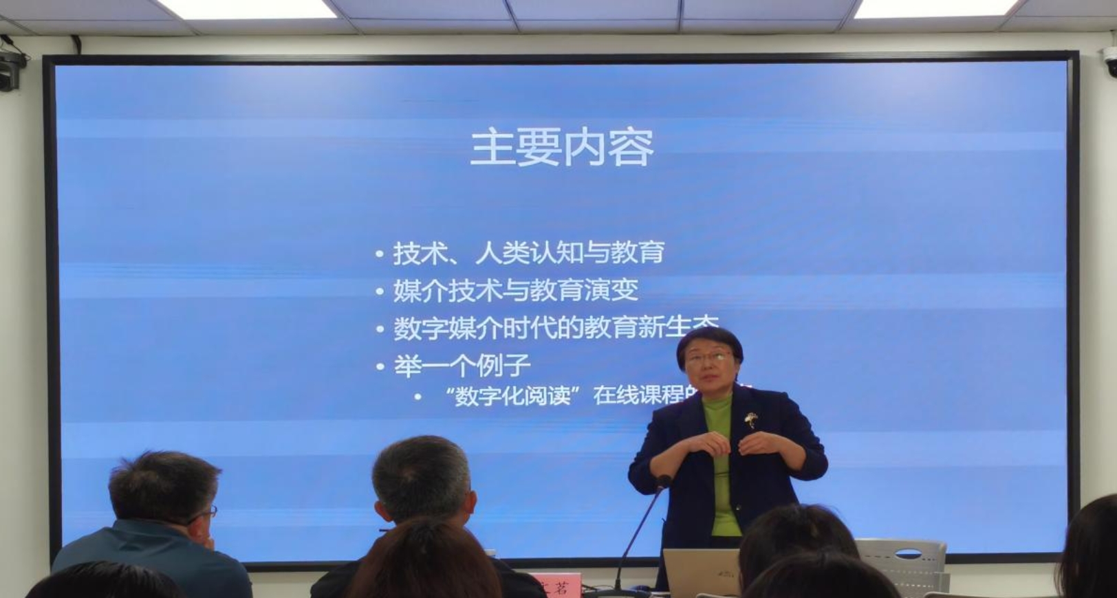 讲座主要围绕技术、人类认知与教育,媒介技术与教育演变,数字媒介时代的教育新生态以及“数字化阅读”在线课程的探索四个方面进行了讲解。讲座中,郭研究员将生动的实例,明晰的数据与自己深刻的思考相结合,系统梳理了从口传时代到现代互联网时代的技术变革历程,引发了在场师生的深入思考。