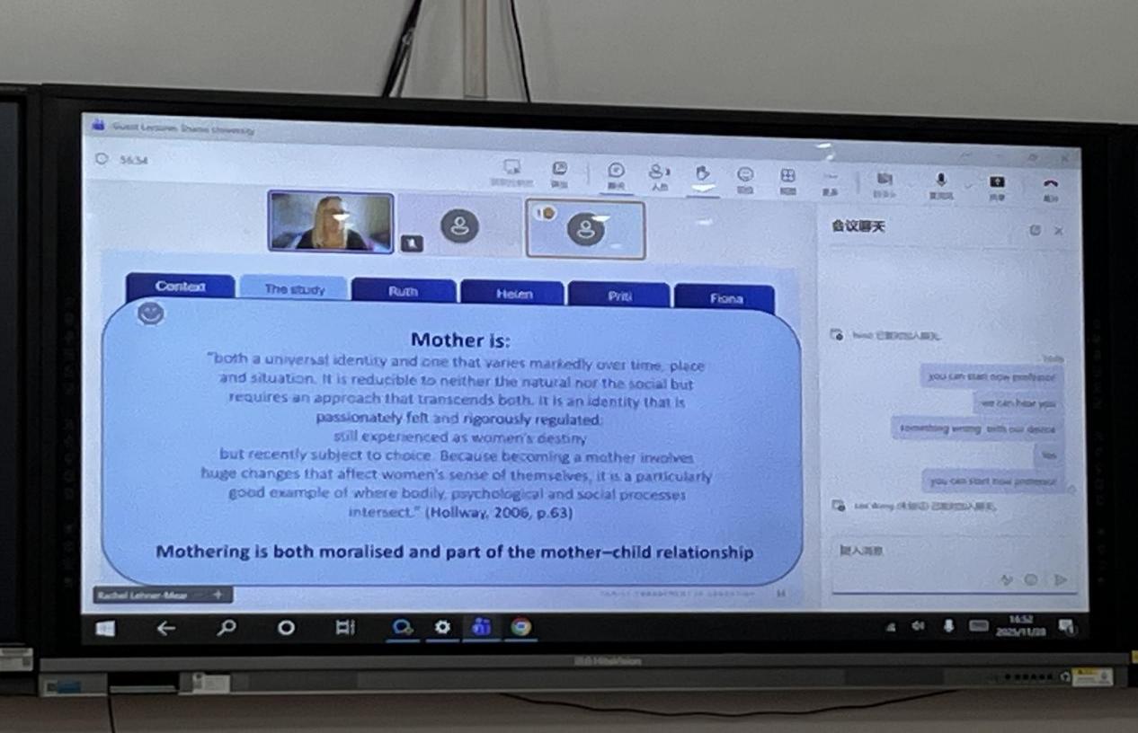 11月28日,英国诺丁汉大学Rachel Lehner-Mear博士进行了主题为《Mothers and their educational support in the UK primary school context》的讲座。她提到,在英国新自由主义教育政策背景下,家长尤其是母亲被塑造为子女学业成就的“第一责任人”,国家与公司通过话语与实践将教育成败重心转移至家庭,使母亲承担配合公司的职责,其角色既不可或缺又常被隐形化。随后,Rachel Lehner-Mear博士对当前教育领域中流行的“家校合作伙伴关系”这一情况提出批判性质疑。