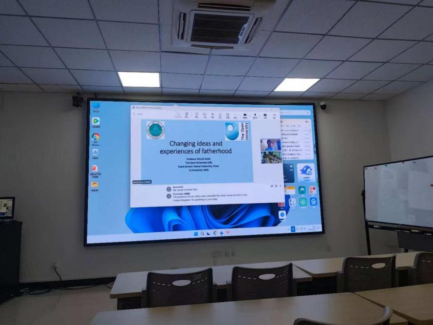 12月12日,讲座六由英国开放大学Martin Robb教授以《Changing ideas and experiences of fatherhood》为主题,围绕当代父职观念变迁、男性气质与照料实践等议题展开。他以多个核心问题为线索,系统呈现了父职研究从“单一角色描述”走向“经验—制度—文化”多层互动解释的研究路径。在男性气质部分,他介绍相关跨国研究进展,指出青年男性面临的“男性气质压力”及其对父职角色的期待。此外,他还分享了与公益机构合作的访谈研究经验。